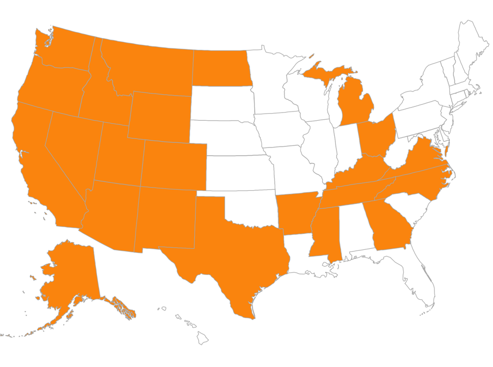 Alaska • Arizona • Arkansas • California • Colorado • Georgia • Idaho • Kentucky • Michigan • Mississippi • Montana • New Mexico • Nevada • North Carolina • North Dakota • Ohio • Oregon • Texas • Tennessee • Utah • Virginia • Washington • Wyoming • …. and your state is next!